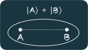 Pero según la mecánica cuántica, también podría encontrarse en una superposición de estos dos estados, es decir, en un estado |A⟩+|B⟩: