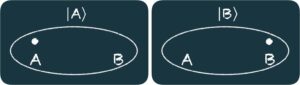 Siguiendo la notación de la mecánica cuántica, decimos que el electrón está en el estado |A⟩ o en el estado |B⟩. Gráficamente: